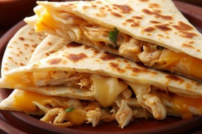 Enjoy this delicious and easy-to-make Chicken and Cheese Quesadilla. It’s a great meal for any time of day!