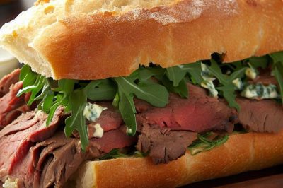 Roast Beef and Blue Cheese Ciabatta Sandwich with Arugula