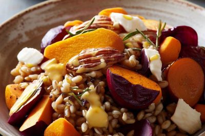 This roasted root vegetable and barley salad with honey mustard dressing is a nutritious and flavorful meal that can be enjoyed as a main course or side dish. It is packed with healthy ingredients and is sure to be a hit with the whole family.