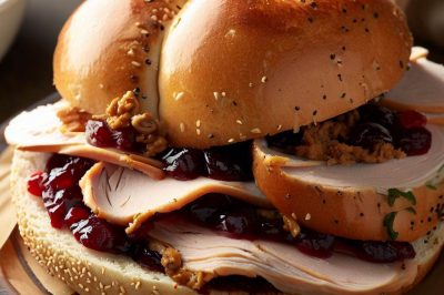 Roasted Turkey and Cranberry Sauce Bagel Sandwich