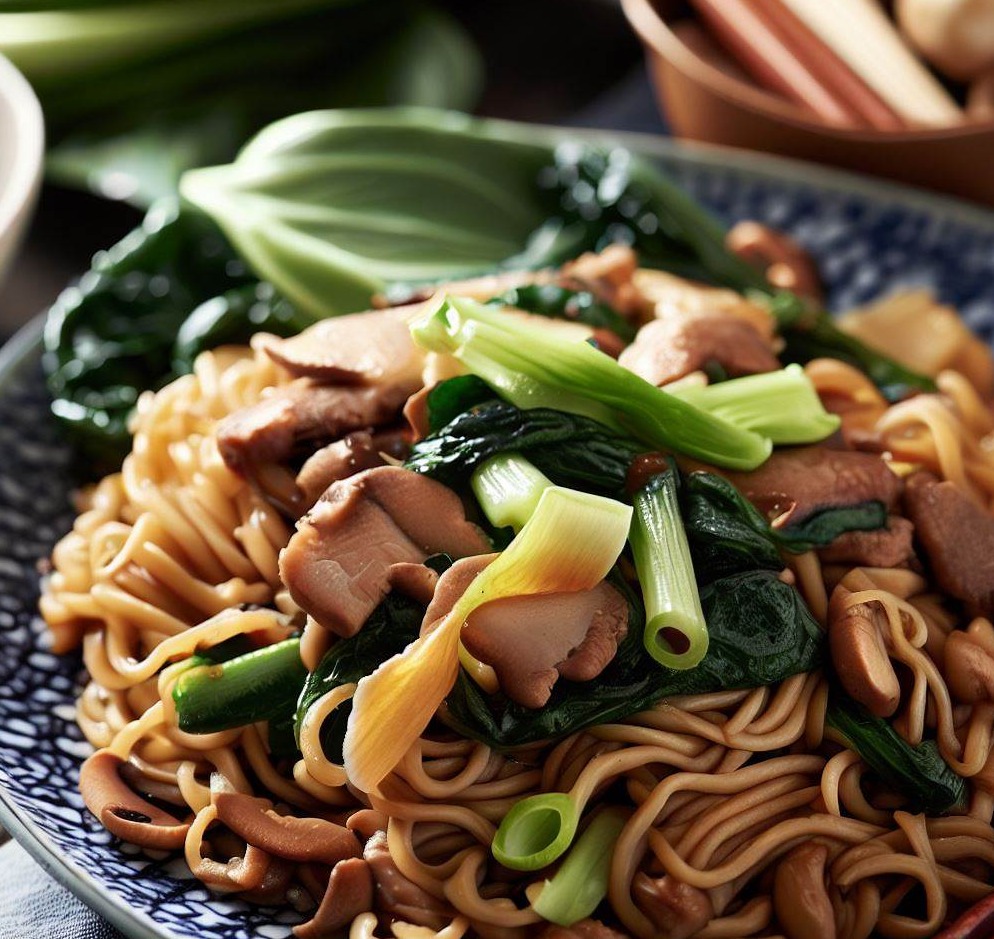 Stir-Fried Noodles with Pork, Bok Choy and Mushrooms